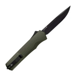 Tekto Knives A5 Spry Auto Knife OD Green Aluminum Handle Tanto Plain Black Blade A5R_T6ODS35BK2_A1