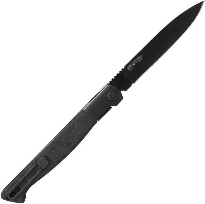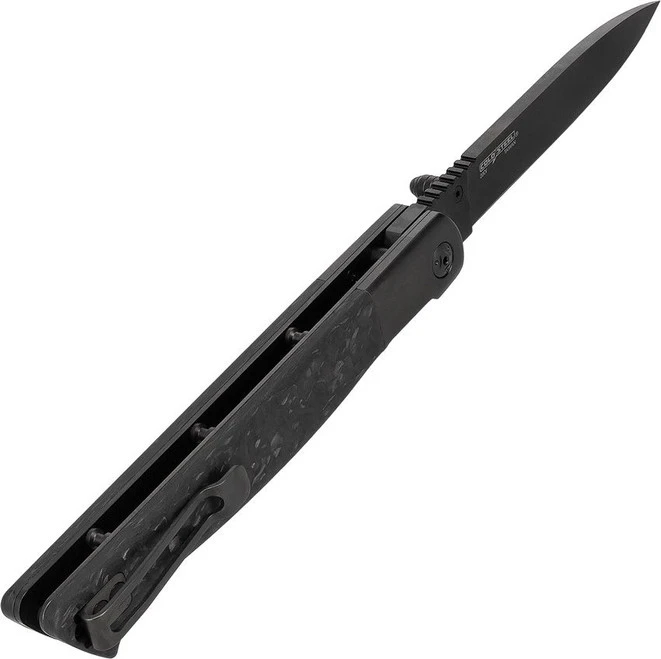 Klaken Folding Knife Titanium/Carbon Fiber Handle 14C28N Plain Edge Bead Blast Finish B06-BK-GY